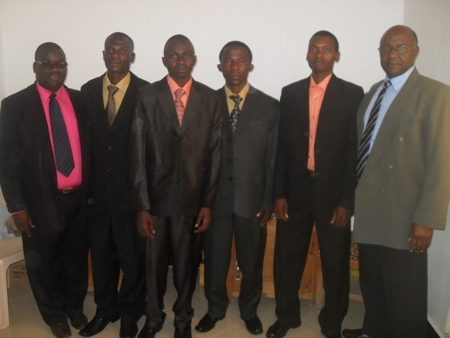 Absalom na Festo na wadhamini wao Black na Shamban wakiwa na wazee wa kanisa